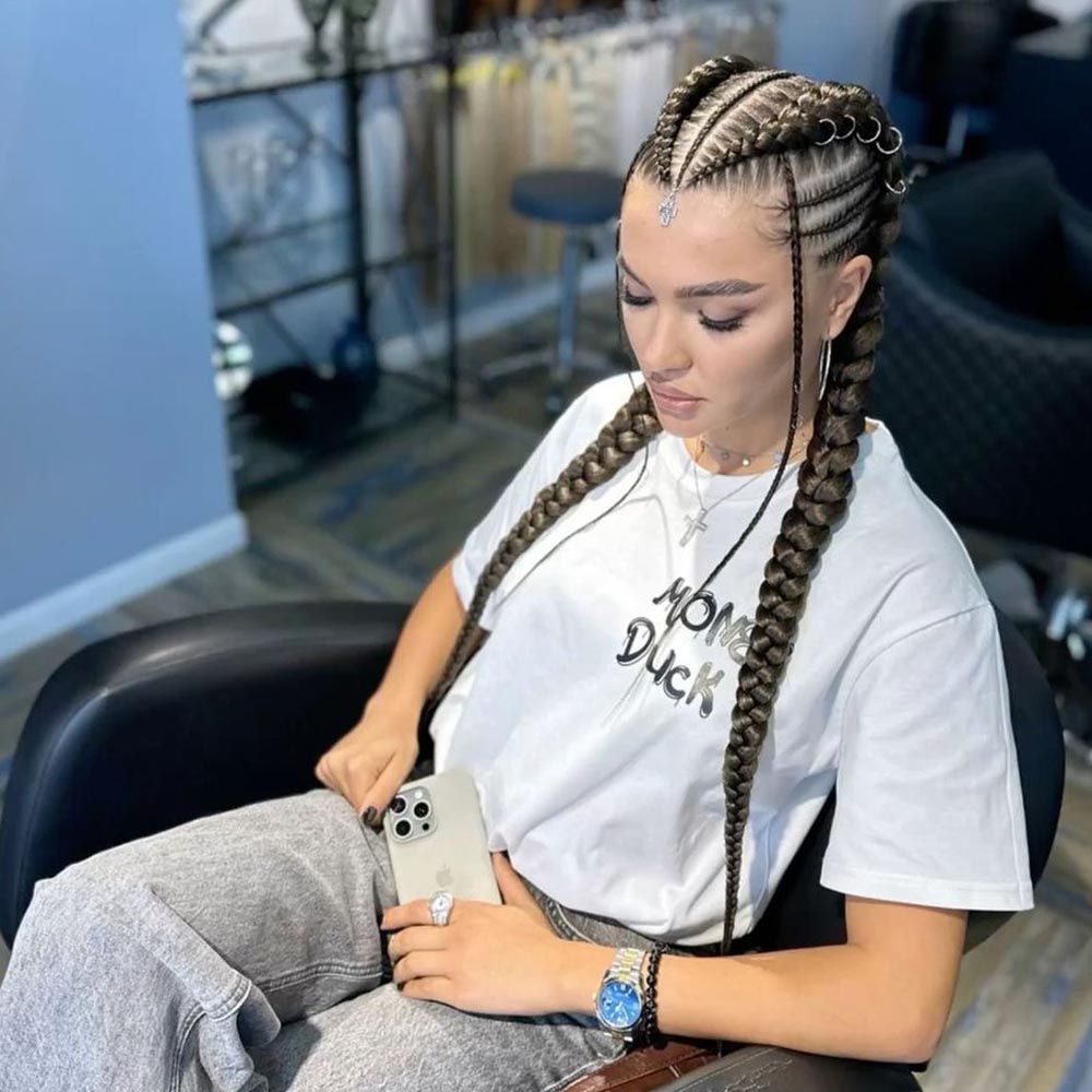 A distinctive hairstyle with neat details that emphasizes identity and confidence.